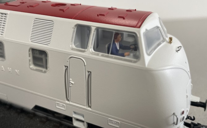 Alle Bauartunterschiede wurden korrekt auf das Modell übertragen. (Sehen Sie dazu die vergleichenden Bilder unten auf dieser Seite!). Aber auch die grundsätzliche Modellpflege im Hause Märklin wurde hier konsequent umgesetzt. So wurden erstmalig am Modell die Führerstandsfenster mittels Klemmrippen montiert, sodass man keine unschönen Montagehilfen an den klaren Scheiben hinnehmen muss. Die Puffer sind - wie bei allen neuen Märklin-Modellen - auf NEM-Höhe konstruiert, die feinen Metall-Griffstangen sind freistehend, der Schriftzug "DEUTSCHE BUNDESBAHN" ist erhaben auf der Seitenwand ausgeführt. Als besonderes Schmankerl lassen sich die beiden Dachlüfter unter dem fein gravierten Schutzgittern digital schalten.